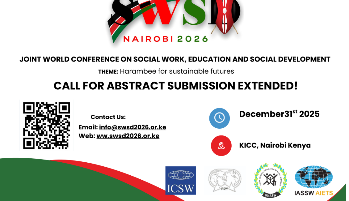 Your abstract should highlight innovative approaches, evidence-based interventions, or critical analyses that contribute to the advancement of the social work profession and community wellbeing under the theme: ‘Harambee for Sustainable Shared Futures’